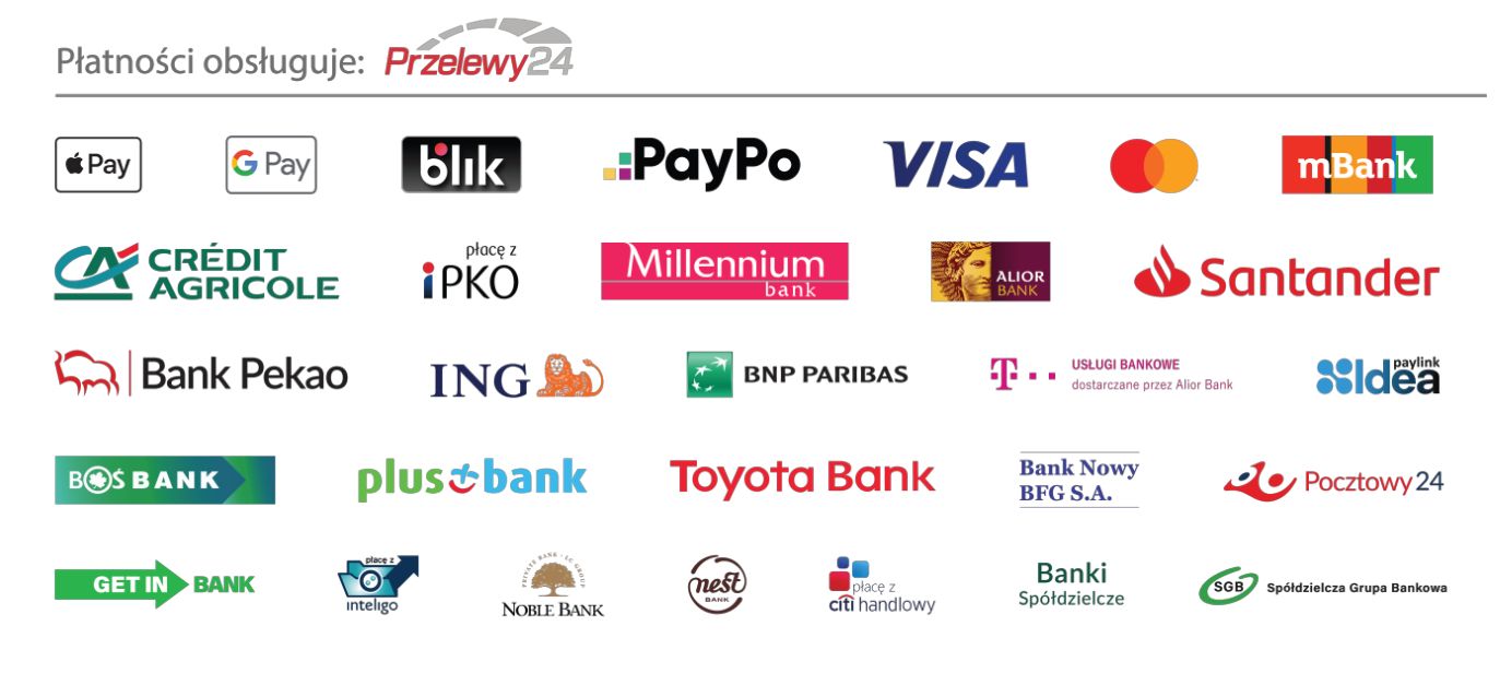 Dzięki płatnościom elektronicznym, w naszym sklepie można dokonywać płatności z następujących systemów: